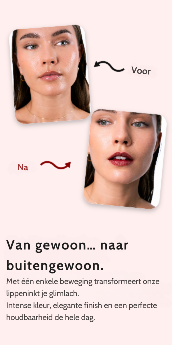 Met zorg ontwikkeld: onze lippeninkt combineert een langdurige houdbaarheid, water- en wrijvingsbestendigheid, met een natuurlijke en elegante finish.